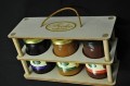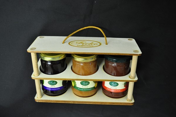 DARILNE ŠKATLE SO SESTAVLJENE IZ STEKLENIČK POLNJENIH Z DOMAČO MARMELADO, DOMAČIM MEDOM IN VRHUNSKIM VINOM